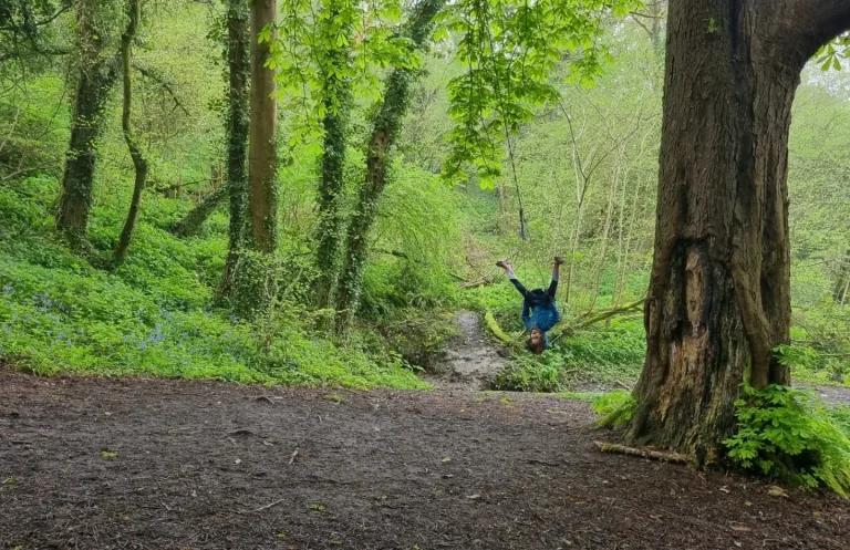 Just a short walk from here is Dundon Beacon. Once an Iron age hill fort it, gives excelent views across the levels & is now a nature reserve, sometimes grazed by cattle. Half way up the main track there is a trail that winds along the Western edge, through the woodland of Oak, Hazel & field Maple & brings you to the summit via a huge Oak tree with 4 rope swings attached. The elevation gives the feeling of swinging out above the tree canopy below. The area is ideal for den making & letting your imagination run wild!